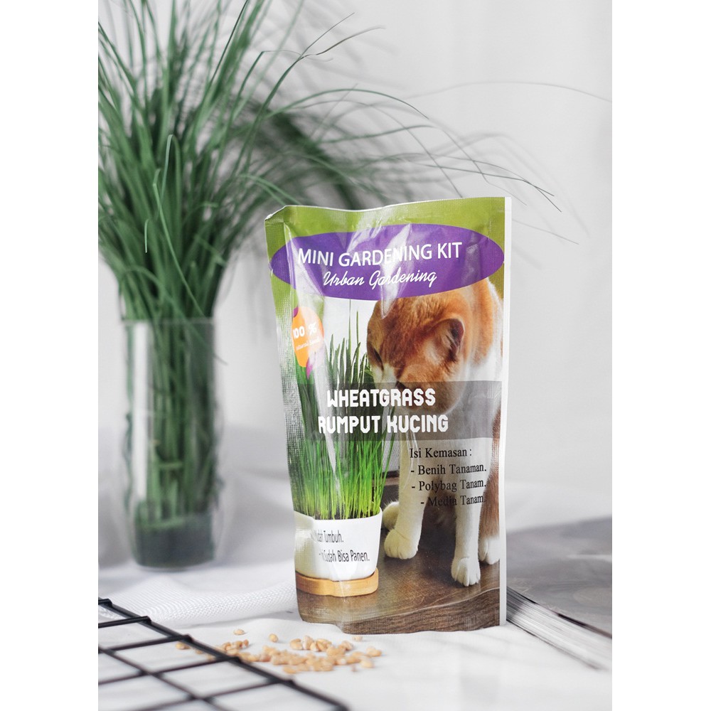 GARDENING KIT PAKET MENANAM RUMPUT KUCING WHEATGRASS 7 HARI TANAM BISA PANEN